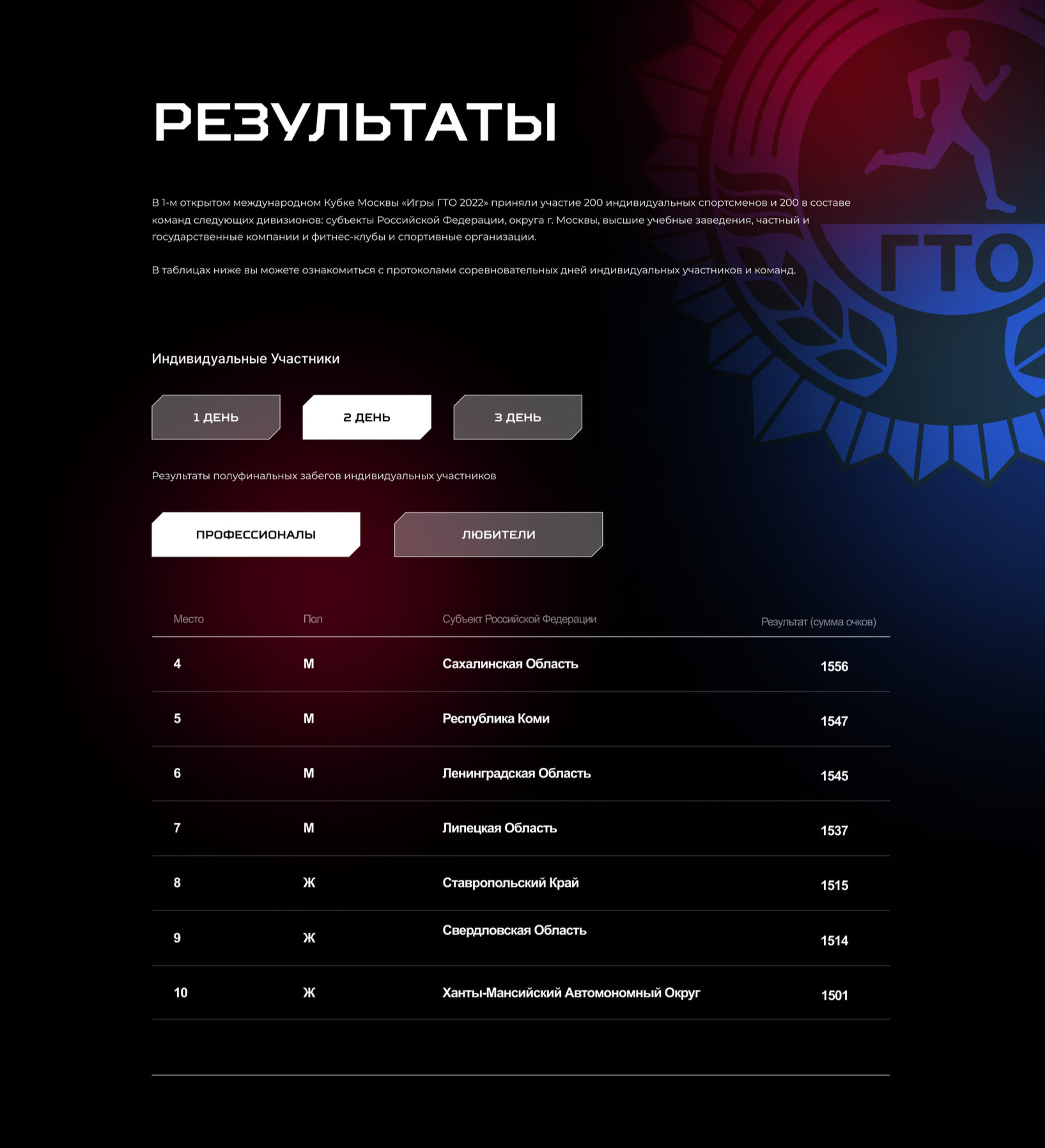 «Игры ГТО» проходят всегда на разных площадках, и одной из наших ключевых задач была их визуализация и согласование перед началом строительства. Мы создавали объёмные модели, демонстрирующие брендинг, разметку, декор, сценические конструкции и другие элементы инфраструктуры.